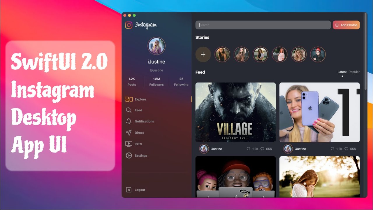 SwiftUI 2.0 Instagram Desktop App UI - Instagram Redesign For macOS